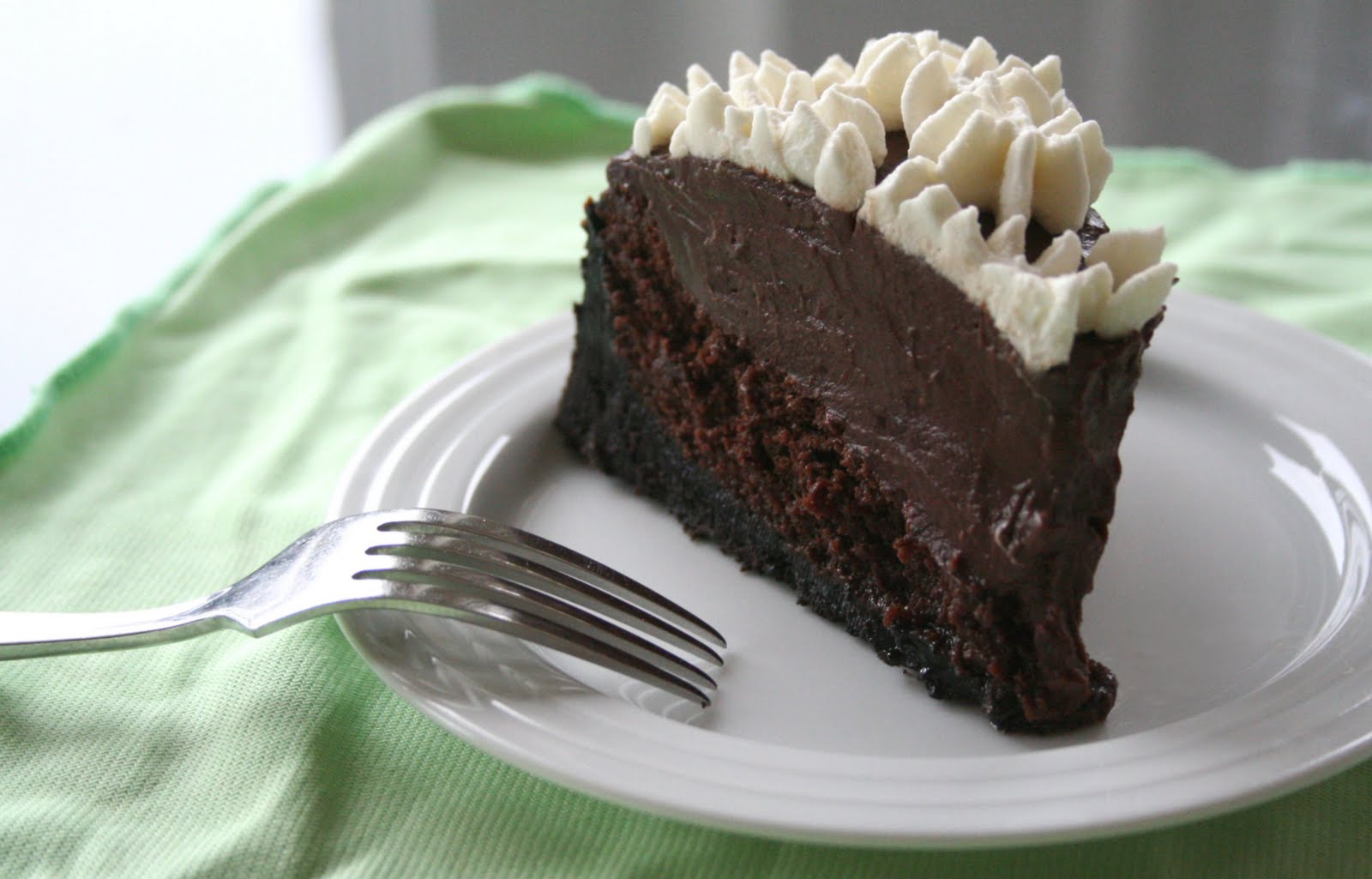 I was extremely pleased with this recipe and so too was my forever taste-testing family. The Oreo crust was to-die-for, the flourless cake layer was moist and chocolatey, the pudding was wonderfully rich and delicious, and the little whipped cream flowers I piped on with a pastry tip topped it off and completed the pretty picture.